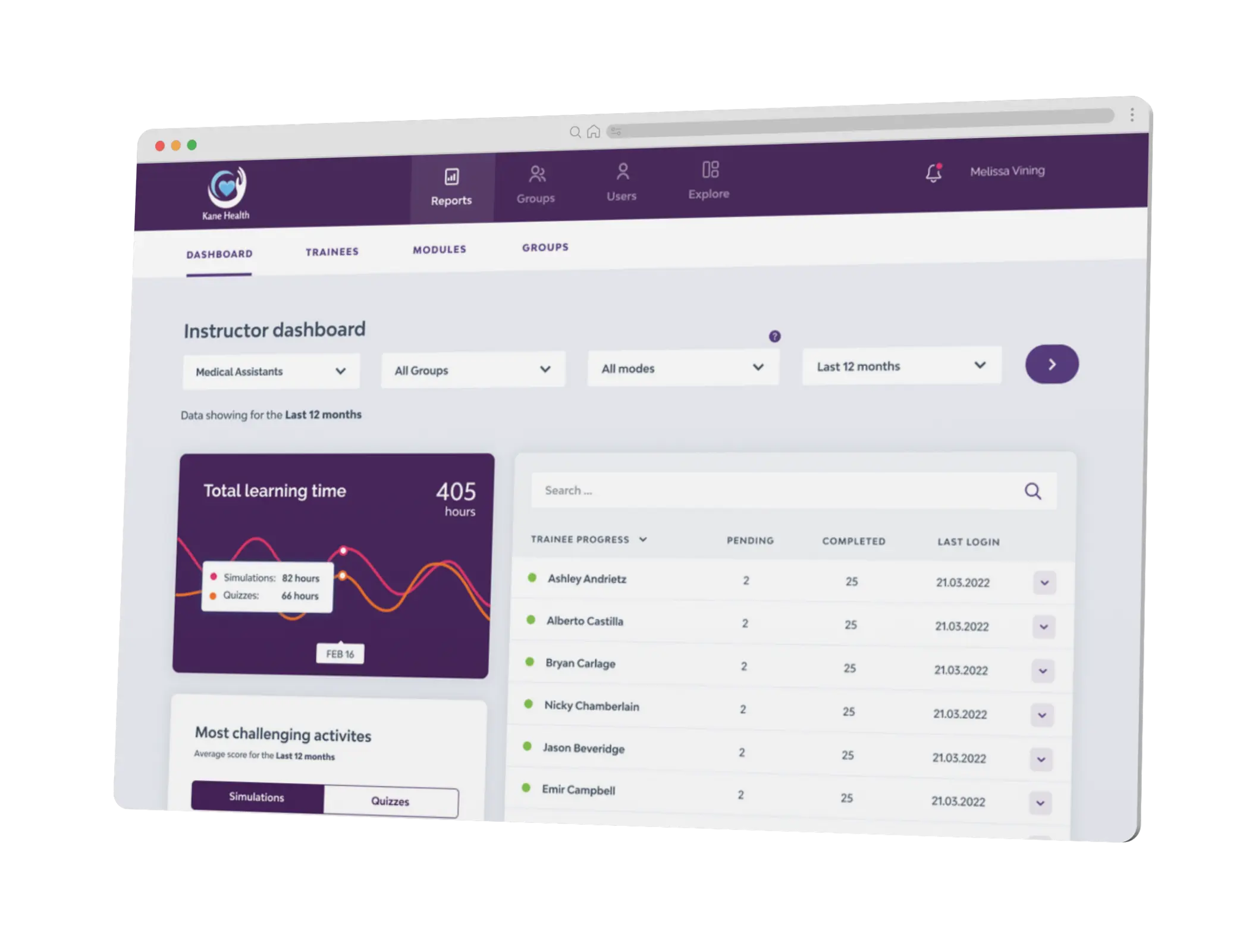 Get access to real-time feedback to support both individual and group-wide performance. The SIMTICS dashboard offers admins detailed reports on study time, quiz results, and simulation performance, so they can pinpoint where learners excel and where they may need additional support. With insights into the most challenging procedures and learner engagement trends, trainers can tailor their instruction to focus on the areas where they know additional support is needed.